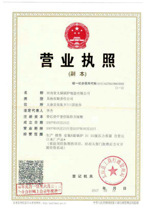 河南省太鍋鍋爐制造有限公司(原河南省太康鍋爐廠始建于1976年)始建于70年代初,經40多年的艱辛探索,靠科技興業,走科學管理之路,現已發展成為承接制造、安裝、設計大、中型供熱系統,生產:SZS燃油燃氣蒸汽鍋爐、燃煤蒸汽鍋爐、燃油鍋爐、燃氣鍋爐、電加熱鍋爐、生物質鍋爐、茶水鍋爐、有機熱載體鍋爐、熱風鍋爐,蒸壓釜、燃油蒸汽鍋爐、燃氣蒸汽鍋爐、燃油熱水鍋爐、燃氣熱水鍋爐并承擔安裝120噸熱水鍋爐、蒸汽鍋爐,生物質鍋爐,加工制造一、二類蒸壓釜、壓力容器,化工機械的省一級**企業。